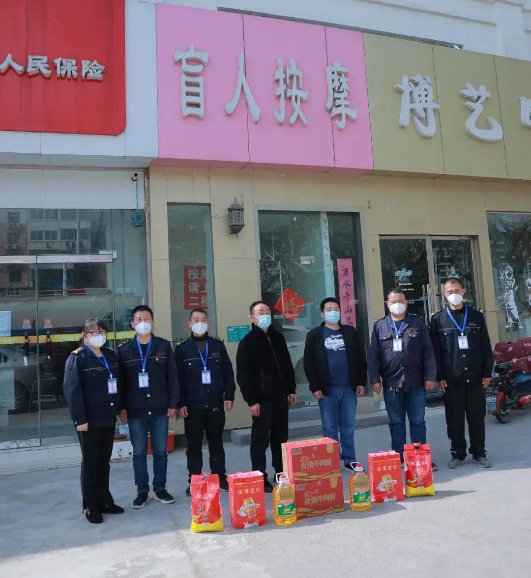 于是,在4月9日早上,新城公司志愿者李根、吳宗、郭開明、陳新讓、張鐘源、秦娟在取得復(fù)工復(fù)產(chǎn)工作證后,立刻一起前往超市采購大豆油,大米、面、方便面、成箱奶、水果、蔬菜等物資,不能趕來的志愿者蔣林和張濤為此也捐了款,在第一時(shí)間把物資送到孫彩云所在的小區(qū)及盲人按摩店里。