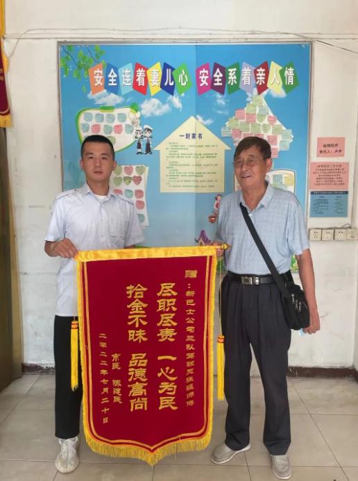 2022年7月25日上午,市民陳老先生拿著一面印有“盡職盡責(zé)一心為民,拾金不昧品質(zhì)高尚”的錦旗,來到徐州公交新巴士公司湖濱調(diào)度室,表揚和感謝18路公交駕駛員張猛。