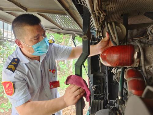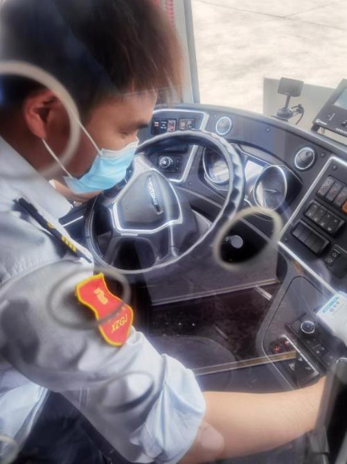 新區(qū)公司1780車駕駛員白延奇駕駛的19路線,由銅山新區(qū)總站發(fā)往徐州火車站,全程接近30.5公里,途徑居民區(qū)、學(xué)校眾多,每天要跑3趟,6個(gè)單程,不堵車的時(shí)候一個(gè)單程需要一個(gè)小時(shí)。“由于工作的特殊性,即便天氣再熱我們也不敢多喝水,早晚高峰堵車至少得1個(gè)多小時(shí)才能回到主站,只有到終點(diǎn)站才能多喝幾口水,抓緊時(shí)間上個(gè)廁所?!?/span>駕駛員白延奇這樣說道。為了給市民乘客提供溫馨、舒適的車廂環(huán)境,每天朝陽還未升起,白延奇就到達(dá)停車場(chǎng),檢查車輛狀況、擦拭發(fā)動(dòng)機(jī)、刷洗輪胎、打掃車輛衛(wèi)生,在確?!拔鍍粢涣痢钡耐瑫r(shí),對(duì)車廂進(jìn)行全面消毒,不一會(huì),白延奇的額頭就布滿了汗珠,身上的行業(yè)服早已濕透,緊緊地貼在皮膚上。