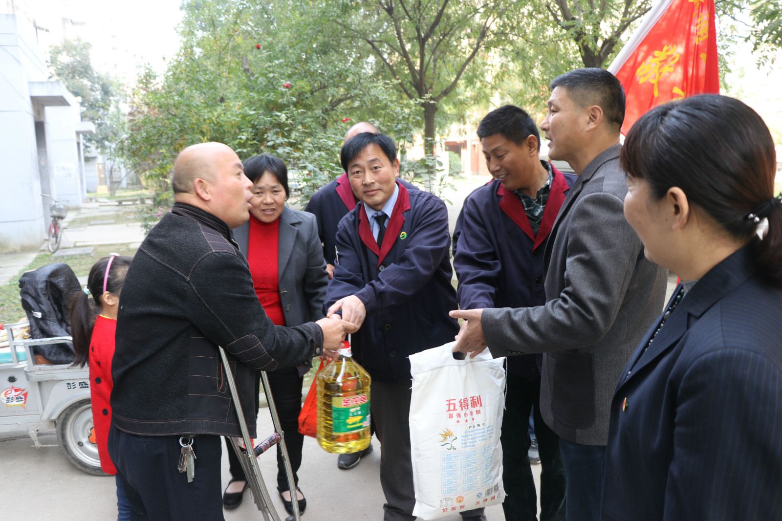10月28日重陽(yáng)節(jié),全國(guó)“敬老文明號(hào)”14路線志愿者服務(wù)隊(duì),來(lái)到惠民小區(qū)開(kāi)展“雙關(guān)愛(ài)”活動(dòng),關(guān)愛(ài)空巢和半失能老人,來(lái)到“一對(duì)一”結(jié)對(duì)幫扶的張金富、張金設(shè)、劉云強(qiáng)等4位失能和半身能老人家中,為他們送去了米、面、油等生活品。