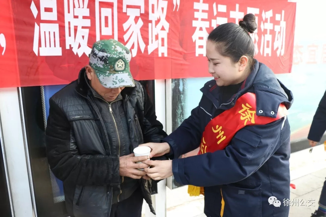 熱情的微笑,真誠的服務(wù),讓歸家的乘客感受到了徐州的溫暖。其中,兆通公司組織志愿者走上公交車,裝扮年味車廂;順通公司提早準(zhǔn)備了50余份“?!弊执盎ê蜔艋\,免費送給市民和準(zhǔn)備返鄉(xiāng)的旅客;新城公司、保修公司向乘客宣傳平安春運(yùn)知識,讓乘客走得安全、放心。