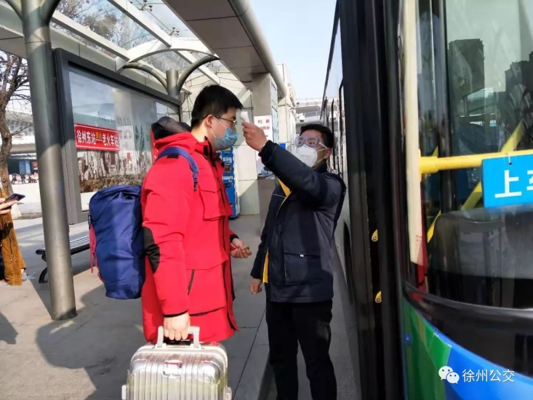 根據(jù)《徐州市新型冠狀病毒感染的肺炎疫情防控應急指揮部通告(第1號)》,從1月27日(農(nóng)歷初三)開始,徐州全面暫停徐州市區(qū)城市公共交通(徐州東站至徐州站單向點對點接駁線路除外)和道路客運班線、包車運營(機場定制客運除外),徐州各縣(市、區(qū))也同時停止所有道路客運班線運營。“這8輛車是目前市區(qū)內(nèi)唯一還在運營的公交線路了,雖然乘客不多,但我們依然要做到萬無一失。”張經(jīng)理告訴記者,根據(jù)上級部門的要求,徐州公共交通集團順通巴士公司在疫情防控期間每天每班配備8輛車(分上午、下午、夜班三個班次),40余名駕駛員輪崗,運營時間為6:00-24:00(每天直到夜里高鐵運營結(jié)束)。這8輛車的運行路線為高鐵徐州東站——徐州火車站單程點對點接駁班車。每天服務乘客約500-600人次。為確保疫情防控,所有車輛堅持做到每趟通風,1趟1消毒,并使用空氣消毒機進行消毒。同時,對所有上車乘客進行體溫測量,嚴禁不戴口罩乘客上車,并對當班駕駛員每趟運營結(jié)束后都進行體溫測量。