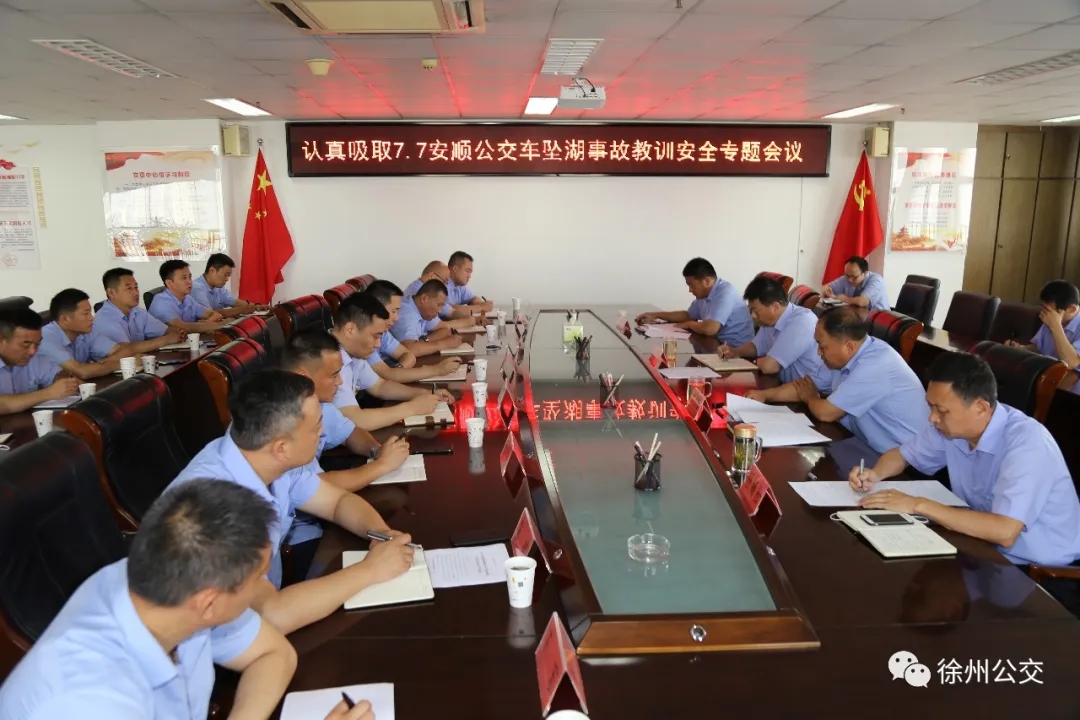 為吸取“7·7”安順公交車墜湖事故教訓(xùn),認(rèn)真貫徹落實(shí)習(xí)近平總書(shū)記關(guān)于安全生產(chǎn)重要論述,按照市委、市政府安全生產(chǎn)專項(xiàng)整治三年行動(dòng)方案及市交通運(yùn)輸局、市交通控股集團(tuán)相關(guān)要求,7月10日,徐州公交集團(tuán)召開(kāi)了認(rèn)真吸取“7·7”安順公交車墜湖事故教訓(xùn)安全專題會(huì)議。集團(tuán)總經(jīng)理馮陸陸,常務(wù)副總經(jīng)理蔣成彪,調(diào)研員王遠(yuǎn)慶以及各營(yíng)運(yùn)公司經(jīng)理、安全經(jīng)理和機(jī)關(guān)、直屬單位負(fù)責(zé)人參加了會(huì)議。