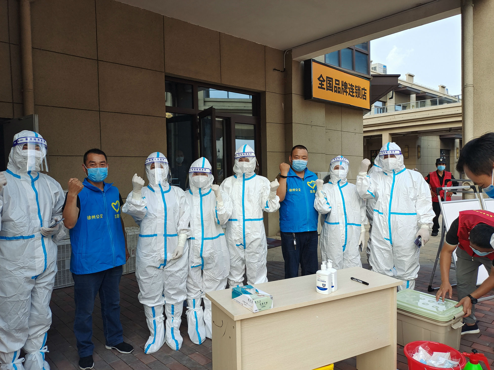 所有人員默契配合,當(dāng)天檢測(cè)人員達(dá)九百余人,在高溫天氣下身穿防護(hù)服的隊(duì)員們后背已然被汗水浸濕,體驗(yàn)到了醫(yī)護(hù)人員的艱辛。