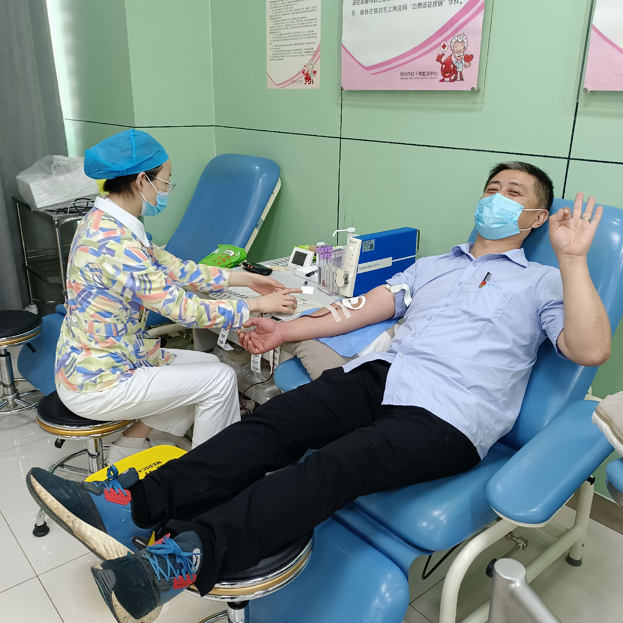 到達(dá)獻(xiàn)血站后,在血站工作人員的指導(dǎo)協(xié)助下,他們填寫(xiě)了獻(xiàn)血登記表,待符合獻(xiàn)血標(biāo)準(zhǔn)后二人擼起衣袖進(jìn)行采血......