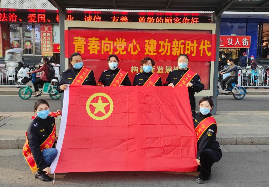 在建團(tuán)100周年之際,服務(wù)督導(dǎo)隊(duì)黨支部組織黨員、青年團(tuán)員以黨帶群團(tuán)方式,走進(jìn)公交站臺(tái)開(kāi)展“青年心向黨 建功新時(shí)代”志愿服務(wù)活動(dòng)。