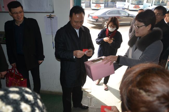 大年初一早晨,市交通運(yùn)輸局局長(zhǎng)蔡前鋒來到公交結(jié)算中心,向公交員工拜年。蔡局長(zhǎng)饒有興致地參加了公交結(jié)算中心舉辦的迎新春“洋洋得意”抽大獎(jiǎng)迎禮品活動(dòng)。