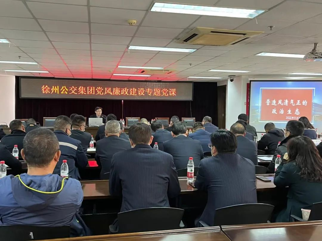為深入學(xué)習(xí)貫徹落實黨的二十大精神,堅定不移推進全面從嚴(yán)治黨向縱深發(fā)展,營造集團風(fēng)清氣正的政治生態(tài),11月17日,徐州公交集團開展黨風(fēng)廉政建設(shè)專題黨課。公交集團黨委副書記、總經(jīng)理袁夫松主持會議,集團機關(guān)部室、基層單位負(fù)責(zé)人等50余人參加學(xué)習(xí)。