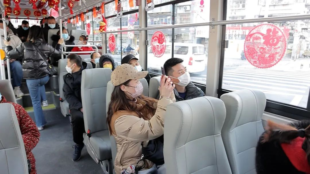 在嶄新的新能源公交車上,市民們不僅可以打卡“年味車廂”,還可以享受提檔升級(jí)的軟座。同時(shí),為了方便市民春節(jié)出行購(gòu)物需求,新車的車身還張貼了“徐州定制公交”“徐州公交民生物流平臺(tái)”“徐州公交維修保養(yǎng)中心”小程序等便民服務(wù)“貼士”。