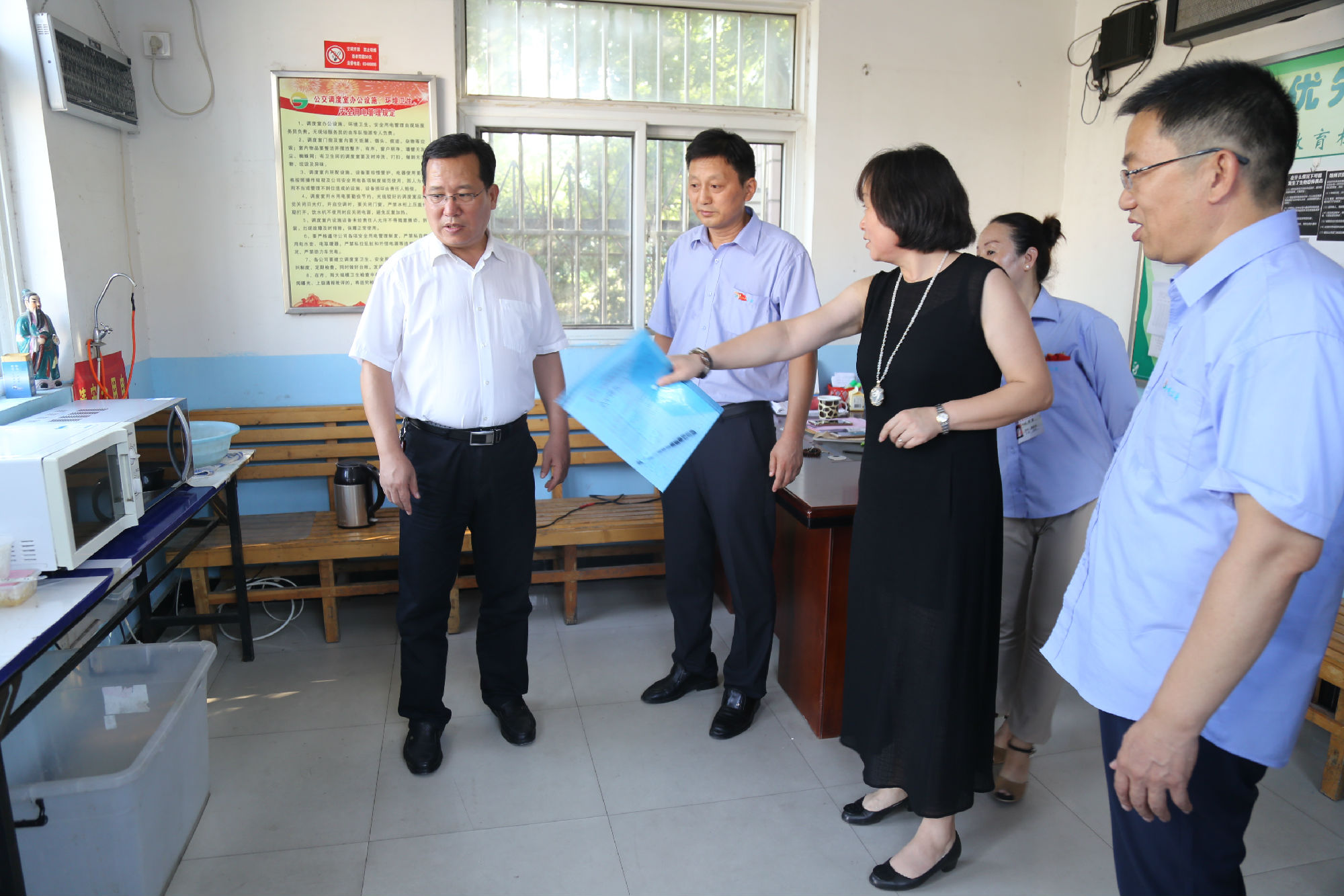 接著,劉洪印走進調(diào)度室,察看了調(diào)度室的工作環(huán)境和降溫措施,關(guān)切地詳細詢問了駕駛員的生產(chǎn)生活、用餐休息等情況,并對公交設(shè)置愛心驛站,關(guān)心關(guān)愛乘客和環(huán)衛(wèi)等室外工作者給予了高度評價。