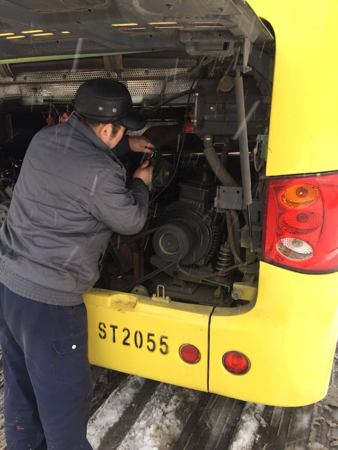 為保證冰雪嚴寒天氣公交車運力正常,公司提前對2300余輛公交車進行了安全性能的全面普查及換季保養(yǎng)作業(yè)項目,進一步加強車輛的日常維護及“三檢”,嚴格執(zhí)行維保規(guī)范,確保車輛設(shè)備的防凍液冰點值不低于-15℃,并提前更換了-10號柴油,防止燃氣車輛冰堵。修理人員冒著風雪,手凍得通紅仍堅持在現(xiàn)場搶修車輛;智能調(diào)度平臺利用3G視頻實時監(jiān)控線路運營情況,利用車載語音不斷播放安全提示,做好雪天行車安排;公交出租450輛出租車全部出車……4日晚,市區(qū)雪深已達375px,氣溫-7℃。大雪造成高鐵晚點6小時,10路線立即增派7輛加班車增加24個班次,直至5日凌晨4:07最后一班車發(fā)車,堅決不滯留一名乘客,全力保障了雪天市民的安全出行。