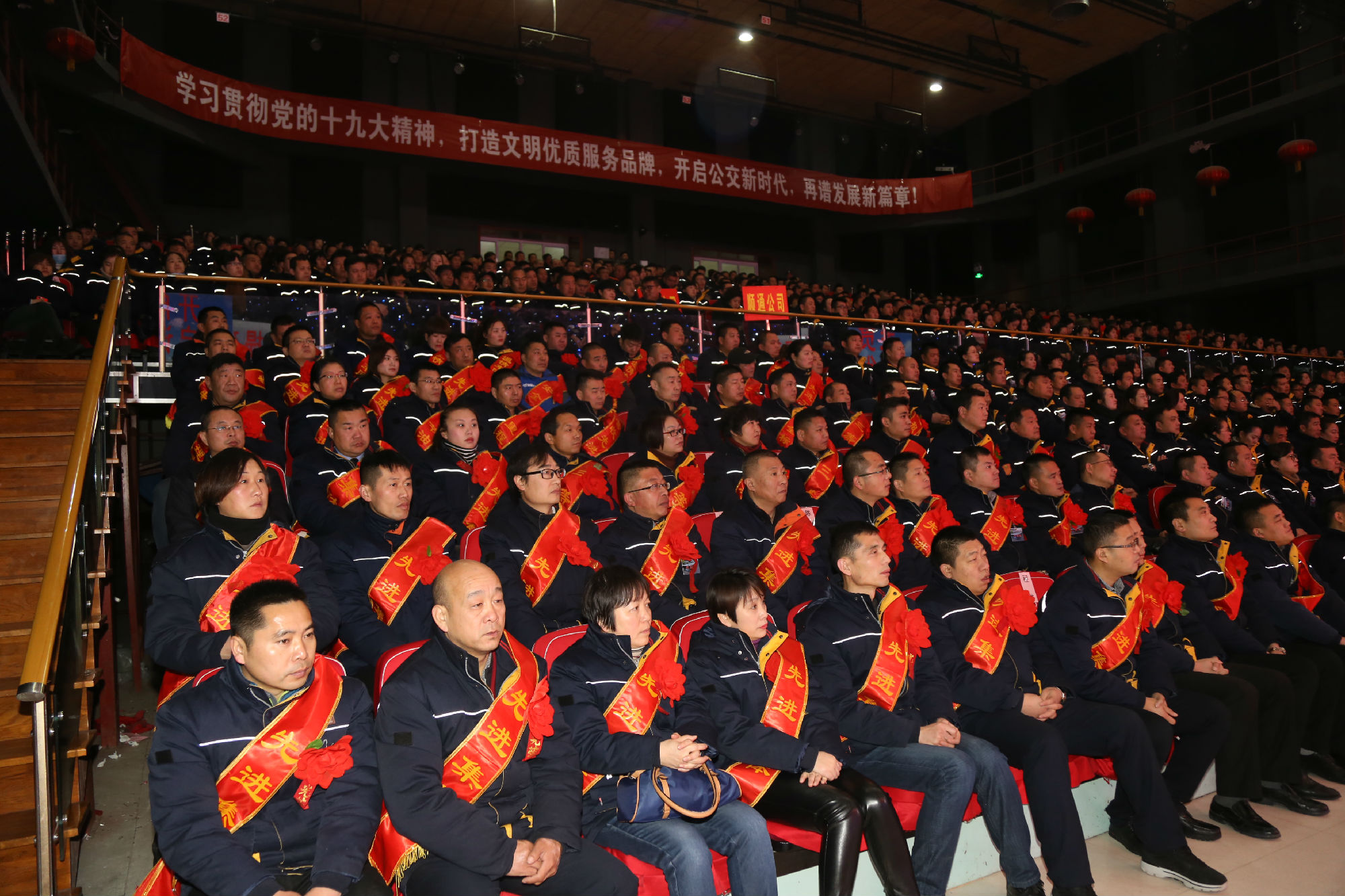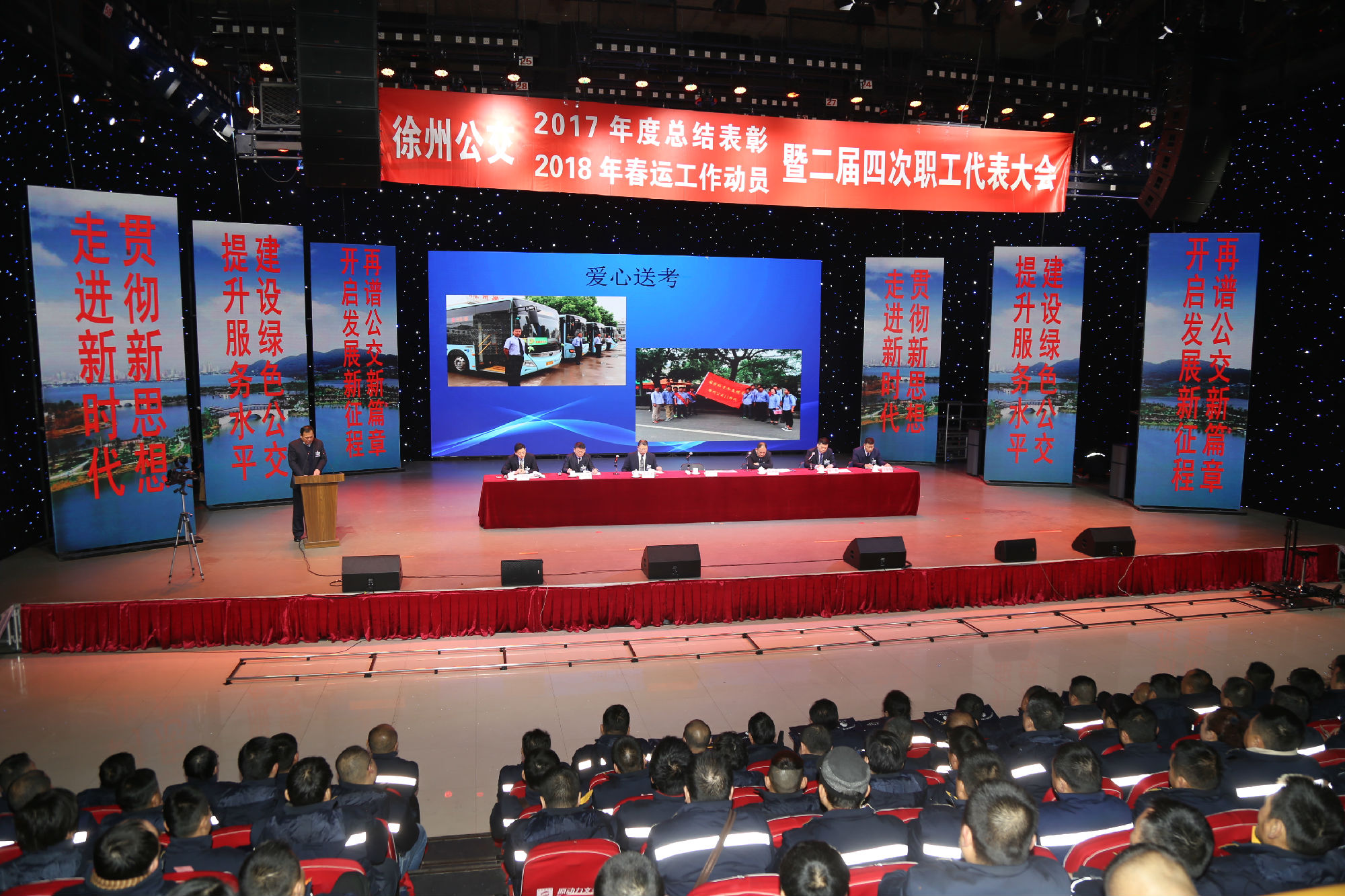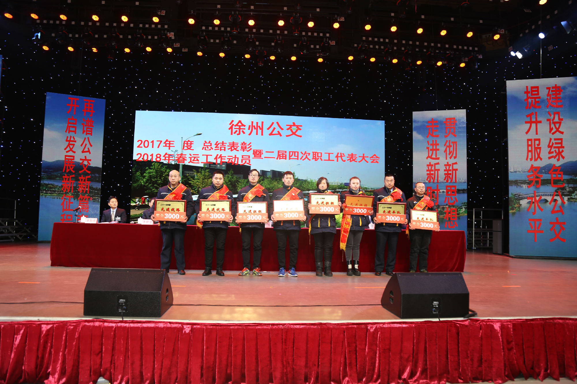 大會在莊嚴的國歌聲中拉開序幕。公司董事長、總經(jīng)理杜紅軍首先作經(jīng)理工作報告,對2017年“改革創(chuàng)新年”工作進行了全面總結(jié):一、實施“同城同價”,優(yōu)化運營管理,實現(xiàn)服務(wù)水平新突破。連續(xù)第五年面向全市征集線路線網(wǎng)優(yōu)化意見近3000條,據(jù)此新辟優(yōu)化線路29條。二、深化資源共享,在互聯(lián)網(wǎng)+企業(yè)管理上譜寫新藍圖。繼續(xù)深化集中維修,推行集中例檢。論證實施支付寶、微信、銀行卡閃付等智能化移動支付方式。三、深化文明創(chuàng)建,打造優(yōu)秀公交,服務(wù)民生出行贏得新口碑。在國檢、省檢中未失一分,圓滿完成創(chuàng)建驗收任務(wù)。投訴總數(shù)和有責(zé)投訴同比實現(xiàn)“雙下降”。乘客表揚同比上升近20%。公司在2016年行風(fēng)熱線上線單位滿意度評議投票中名列榜首。率先打造公交行業(yè)禮讓斑馬線嶄新形象,圓滿完成公交反恐防暴工作。四、著力綜合管理,聚合內(nèi)生動能,增強企業(yè)發(fā)展新優(yōu)勢。重新修訂2012版管理制度匯編和新版《徐州公交獎懲條例》。五、踐行十九大精神,推進和諧發(fā)展,開創(chuàng)黨群工作新面貌。接著,杜總分析了工作中存在的問題,提出下步工作重點。一、建設(shè)現(xiàn)代化公交,提升經(jīng)營管理水平,保障企業(yè)良性有序運行;二、踐行集約共享理念,深化科技應(yīng)用,開創(chuàng)公交事業(yè)發(fā)展新局面;三、建設(shè)平安公交,提升服務(wù)口碑,展示文明公交新形象;四、踐行十九大精神,構(gòu)建和諧公交,開啟黨群工作新面貌。