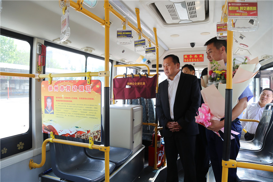 每到一處,杜總都會熱情地與勞模先進們交談,充分肯定他們在各自崗位上默默無聞、兢兢業(yè)業(yè)、優(yōu)質(zhì)服務(wù)乘客所取得的突出成績,對他們的貢獻和努力表示感謝,并鼓勵他們繼續(xù)發(fā)揮表率作用,用模范行為影響身邊人、帶動更多人,促進公交服務(wù)再上新臺階。聽說王博中午為打掃車輛沒按時吃飯時,杜總關(guān)切地叮囑他保重身體。在64路車上,得知劉艷軍的孩子最近生病住院,杜總耐心地詢問他生活上有無困難,公司一定會提供力所能及的幫助。