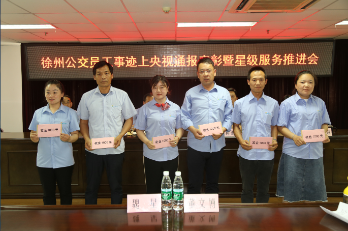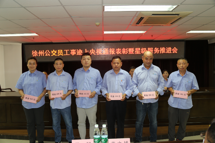 5月30日下午,公司隆重召開了“徐州公交員工事跡上央視通報表彰暨星級服務工作推進會”,對近30多天來受到市以上新聞媒體,包括被央視宣傳報道的救助病人、照顧老人、見義勇為、優(yōu)質(zhì)服務的優(yōu)秀員工進行了集中表彰獎勵,公司董事長、總經(jīng)理杜紅軍,工會主席竇同銀,調(diào)研員祖伯鴻及各單位分管領導、服務主管、政工員、先進典型等一線員工代表82人參加會議。